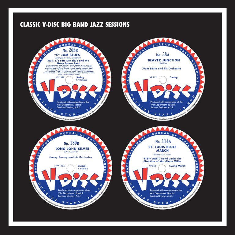 The first batch of V-Discs shipped to military fighters overseas on Oct. 1, 1943. Less than two years later, we won the war. Many other elements contributed to this victory, of course, but let’s not short-change the power those records must have had. Mosaic Records celebrated this unique catalogue category