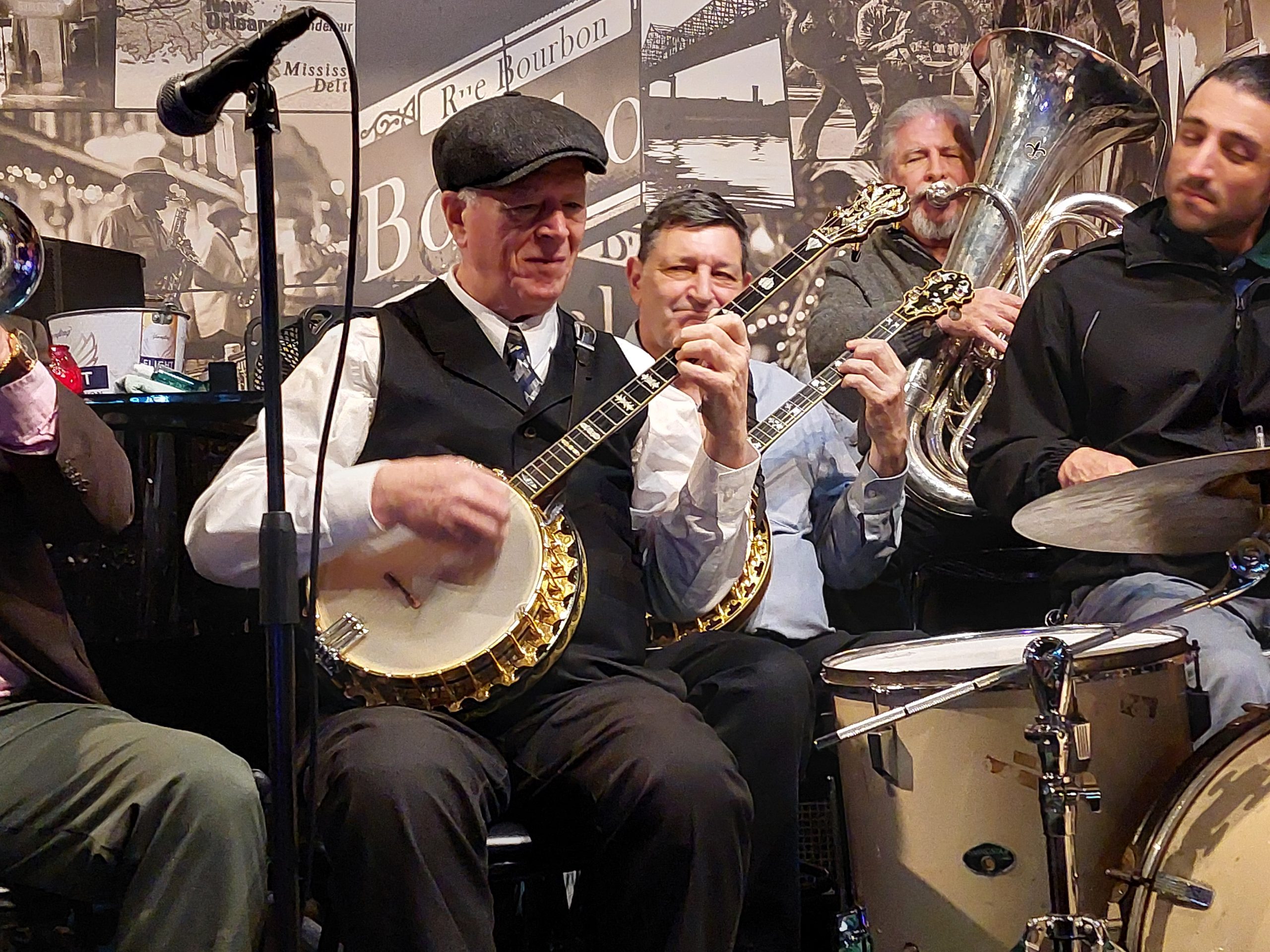 John Gill at Maison Bourbon: John Gill (bj), Bob Barta (bj), Danny Rubio (tuba), Josh “Jams” Marotta (dr) (photo by Shelly Gallichio)