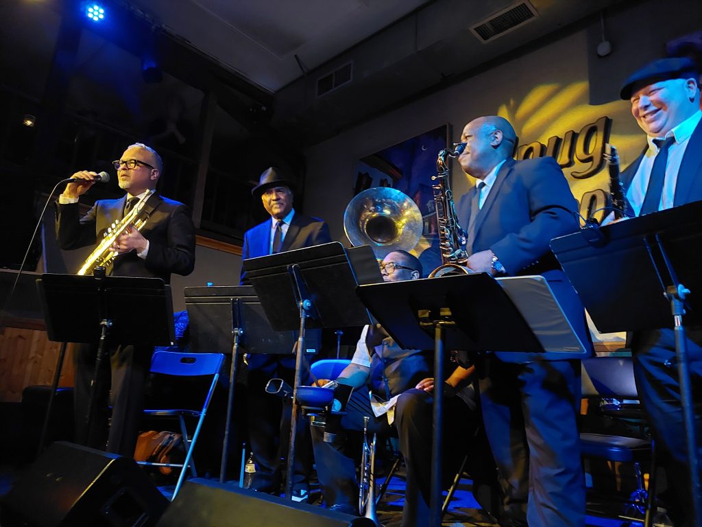 Leroy Jones and Katja Toivola (tb) had Daniel Farrow again on sax with Mike Clement (gtr), Jason Stewart (bs) and Brett Gallo (dr). The afternoon and early evening sessions are always full and visitors are so happy to see/hear these musicians in the iconic and revered Hall. The next set had Gregg Stafford (tp), Stephen Walker (tb), Louis Ford (cl), Mitchell Player (bs), Lars Edegran (p) and Joey Lastie (dr). What a wonderful way to spend a few hours on what was a very cold Sunday afternoon!