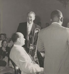 Goodwin was a natural who couldn’t read music. While he was a swinging, self-taught pianist as a second instrument, his first-rate cornet playing dripped emotive heat and passion. Drummer Jeff Hamilton, who played with him in the band Sunset Music Company, swore that Jim Goodwin on one occasion had played the single hottest note that he had ever heard. Although his technique wasn’t dazzling, his sense of swing phrasing was massive. His creative ideas were enhanced by shakes, growls, mutes, half-valve bent notes and expressive tone, usually not a typical “pretty” trumpet sound but more of a declarative shout. With a huge repertoire and personal approach, the closest known player to compare him to would be Henry “Red” Allen.