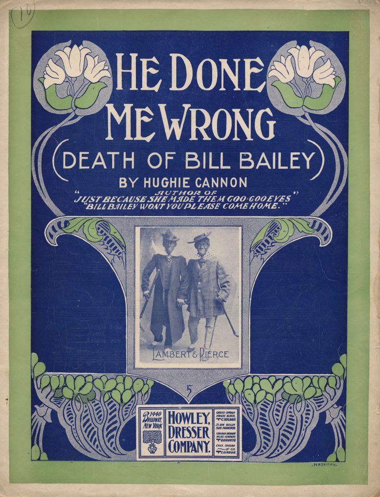 In 1902, Hughie Cannon wrote his most famous blues song, “Bill Bailey, Won’t You Please Come Home?” “Bill Bailey” is Cannon’s “answer song” to “Ain’t Dat a Shame,” with the same 12-bar blues structure in the verse, continuing the story of Bailey, and name-checking the earlier title in the chorus. This, of course, is a song that jazz, ragtime, and folk musicians all know very well, and thankfully for us, it was recorded extensively in the era. As such, it was arguably the most famous blues song of its time.