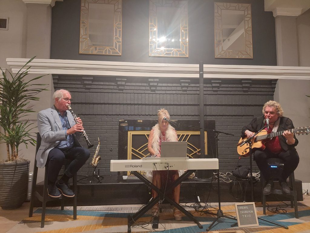 That weekend we basically followed Groovus to the site of Helen Daley’s birthday party bash at our beloved San Marcos Resort in Chandler, Arizona. Helen and Bill Daley, with dozens of volunteers, ran the Chandler Jazz Festival for many years until it closed in 2024. What a fun weekend to see numerous local former attendees and celebrate Helen’s birthday with Groovus and Cheryl Thurston’s various bands. Months ago, Helen arranged for Groovus to play for her party and started the ball rolling for their additional gigs in Tucson and Scottsdale.
