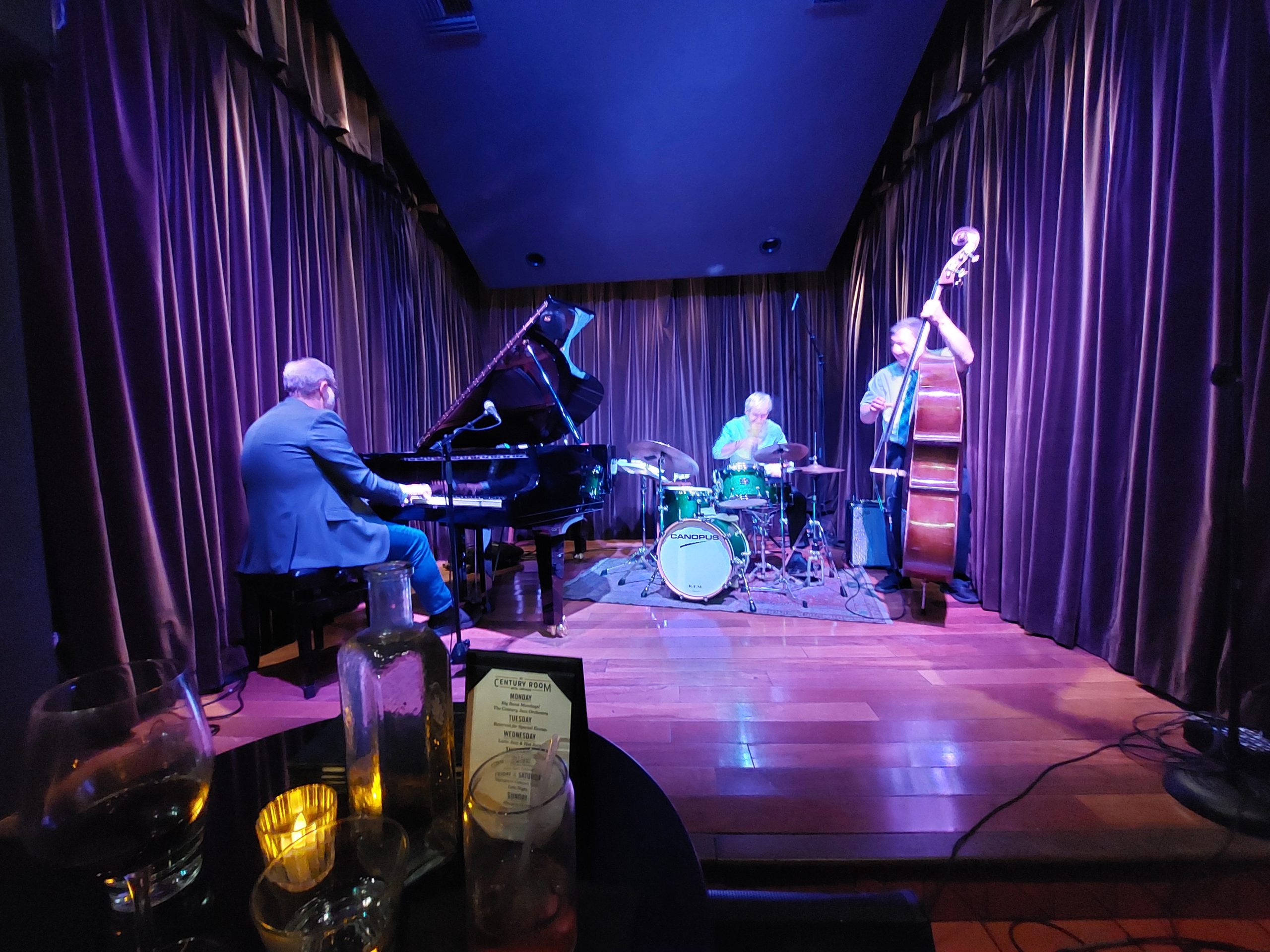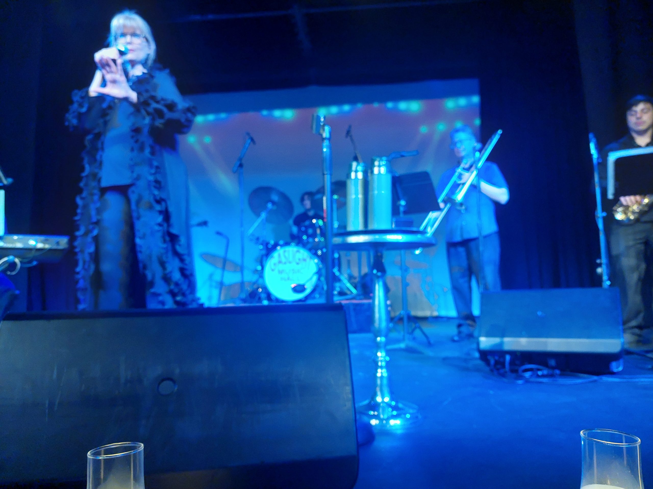 A busy month started off with Sheryl Ann Mckinley and her sextet for her debut at the Gaslight Music Hall, one of our favorite venues. She is a vocalist we follow regularly and this performance had Rob Boone (tb), Max Goldschmid (tp, alto), Sly Slipetski (p), Jack Wood (bs gtr) and Kenji Lancaster (dr). The Gaslight is a much larger venue for her and it was pretty well sold out—the audience was enthusiastic and it was fun to see her on a much larger stage and with a full band. I think it was a true success!