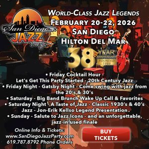 The San Diego Jazz Party, now in it’s 38th year, features today’s leading mainstream jazz performance artists from around the world. Presented in an intimate