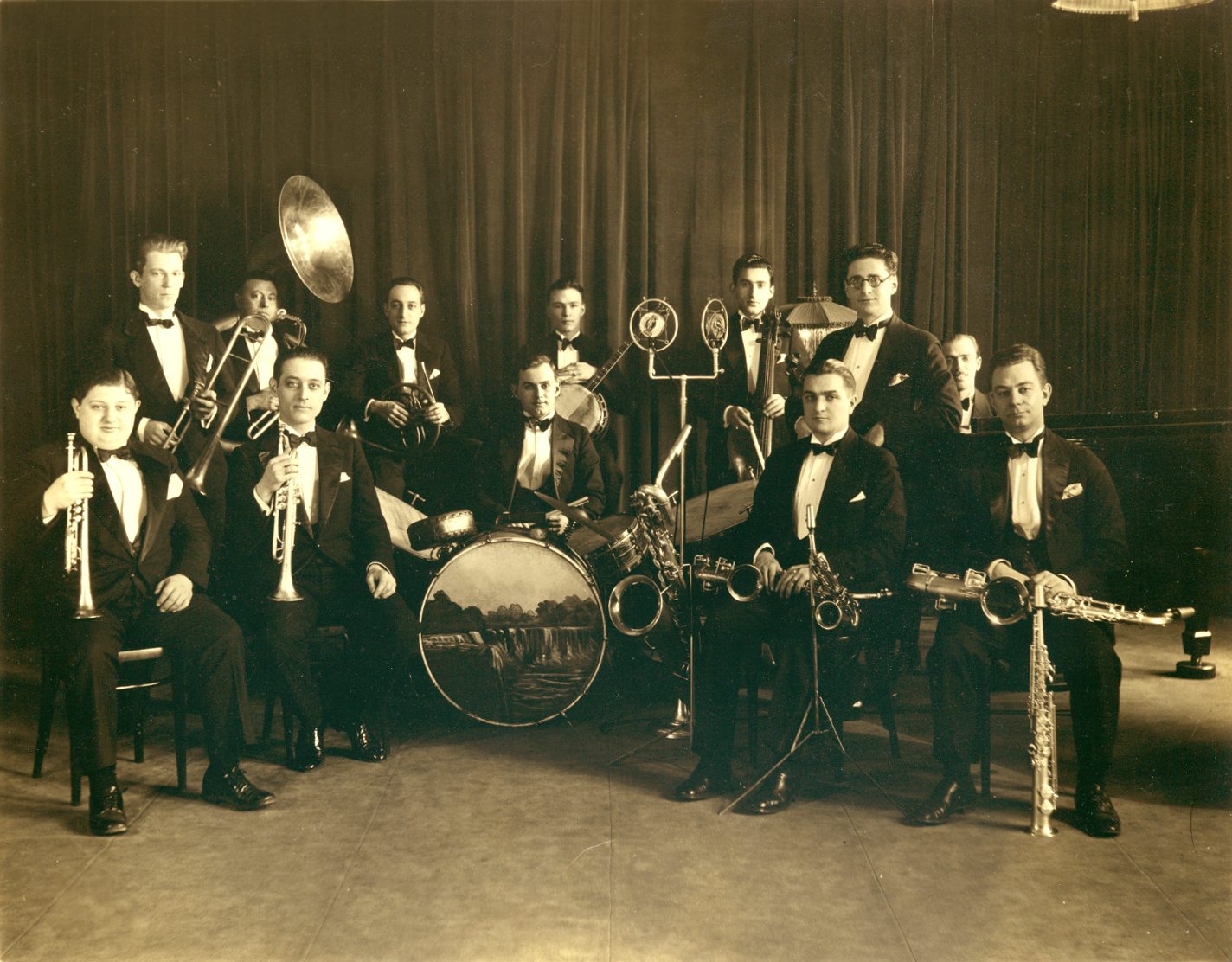 Harvey Belair at the drums, circa 1929, with Emil Heimberger’s Orchestra.