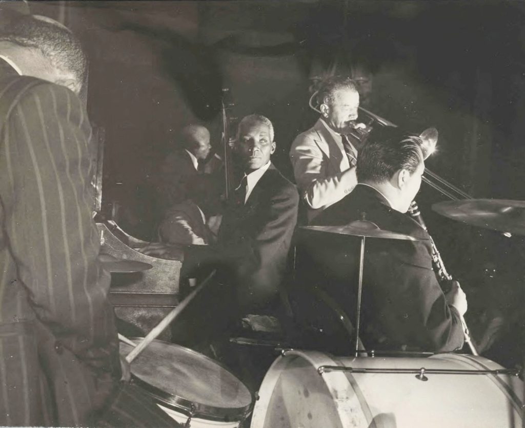 Jeff Barnhart: Hal, we’ve been having great fun listening to the 1945 sides made by trombonist Kid Ory and his marvelous band. I have to think of all of our topics thus far, the subject of Ory in the 1940’s has garnered the most feedback, quite a lot of it international! So let’s not quit yet. We’re continuing this month with sides on Columbia from 1946 with the same personnel as 1945’s Crescent sides, excepting once again the clarinet chair shifts, this time from Darnell Howard to Barney Bigard. Hal, quite some time transpired between the Crescent sides of Nov. 1945 and the Columbia dates in Mid-October 1946, yet the band was very popular at the time. Was their tour schedule too heavy to allow more time to record during this period?