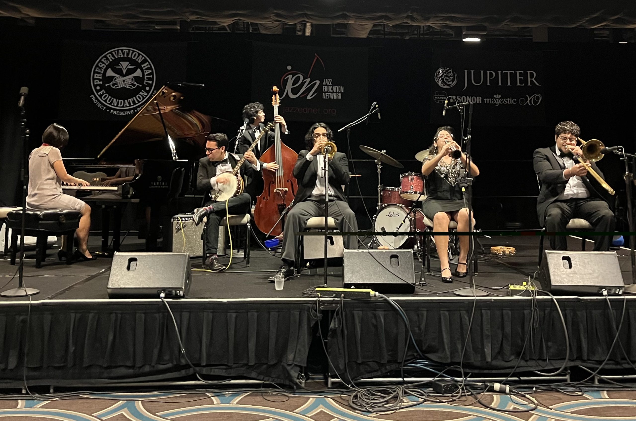 Every other year, the annual conference of the Jazz Education Network (JEN) is held in New Orleans. This past January was such an occasion, and I was there, rubbing shoulders with thousands of fellow educators, students, professionals, and industry reps. I’m happy to report that trad jazz was appropriately represented in the proceedings; in fact, the theme of the conference was “The Spanish Tinge,” referencing Jelly Roll Morton’s famous nod to the Afro-Latin rhythmic influences in early jazz, and this year’s conference logo was a portrait of him.