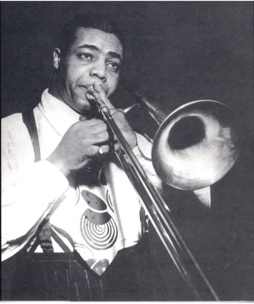 When the Basie band was discovered by John Hammond on a radio broadcast from Kansas City and brought East, they just had two trombonists (George Hunt and Dan Minor), neither of whom were known as significant soloists. Very little is known about Hunt (1906-46). He was born in Chicago and joined the Bennie Moten Orchestra shortly after their last recording session in 1932. After Moten’s unexpected passing in 1935, Hunt joined the new Count Basie Orchestra. While he was with the band during its early successes, appearing on four recording dates including the one resulting in “One O’Clock Jump,” he only lasted until the fall of 1937. In 1938 he was briefly with the Fletcher Henderson Orchestra before joining the Earl Hines band, appearing in Hines’ trombone section on recordings during 1938-42. Nothing much is known about his whereabouts after that and unfortunately Hunt committed suicide in Chicago in 1946.