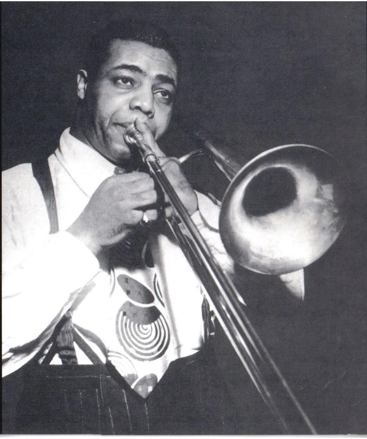 Vic Dickenson was born Aug. 6, 1906, in Xenia, Ohio. Starting with the Elite Syncopators in 1921 when he was 15, Dickenson worked with many long-forgotten Midwest bands including groups led by Roy Brown, Don Phillips, Willie Jones (with whom he made his recording debut in 1927), Bill Broadhus, Wesley Helvey, and Leonard Gay. He eventually worked with better-known territory bands including Speed Webb, Zack Whyte, Thamon Hayes’ Kansas City Skyrockets, and Clarence Paige’s Royal Syncopators. Following were stints with Blanche Calloway (1933-36), Claude Hopkins (1936-39) and Benny Carter (1939). But when he replaced Benny Morton in February 1940, Dickenson was still an unknown to the jazz public.