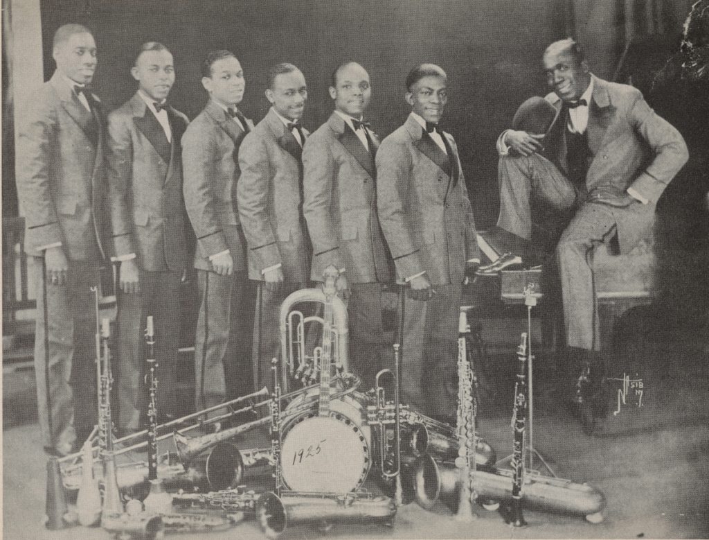 Fess Williams with his Royal Flush Orchestra (1925), from The Savoy Story. Schomburg Center for Research in Black Culture, Jean Blackwell Hutson Research and Reference Division, The New York Public Library.